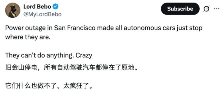 旧金山大停电, Waymo自动驾驶汽车瘫痪, 特斯拉赢麻了