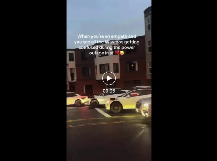 停电导致交通讯号灯灭火,Waymo 汽车在路口兄弟无措,在莫得绿灯的情况下,这些汽车不知说念该作念什么,最终永劫刻的停在原地。