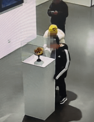 在配头私费举办的免费“爱”主题艺术展中展出时,监控浮现别称男孩反复拖拽展台防护罩,最终导致凤冠连同罩子坠地严重变形。尽管展览配备了保安和加固措施,仍未能幸免不测。