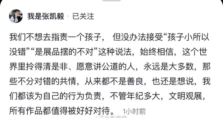 张凯毅配头“重见解轻索赔”的神色,防守了公益初心;也有东谈主暗意毁灭追责纵容了熊孩子跟熊家长的不负牵扯。