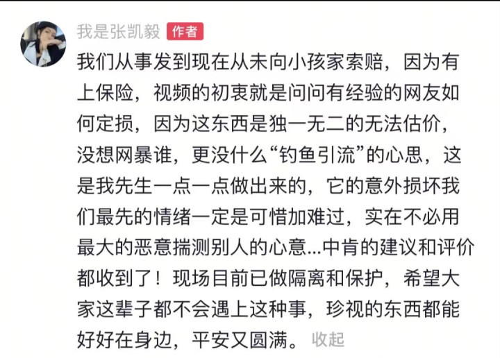 澄清初志:发布视频是为乞助定损开采有蓄意,并命令斯文不雅展,否定炒作意图;