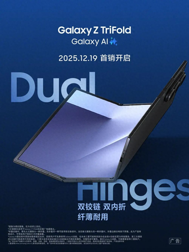 不久前,三星首款三折叠Galaxy Z TriFold国行版块崇敬发布。