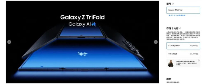 据悉,三星Galaxy Z TriFold提供16+512GB、16+1TB两个版块,售价分歧为19999 元、21999 元。