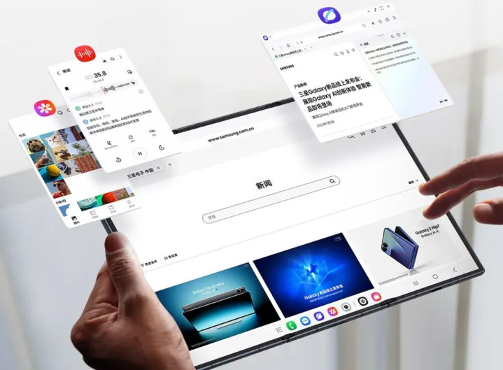 当Galaxy Z TriFold翻开时,这块10英寸屏幕提供的空间相配于三部 6.5 英寸智高手机大小,搭配Galaxy AI可同步启动多款愚弄设施。